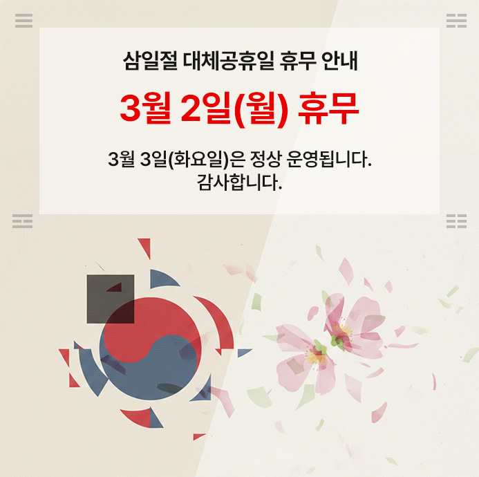 03월 02일(월) 삼일절 대체공휴일 휴무
