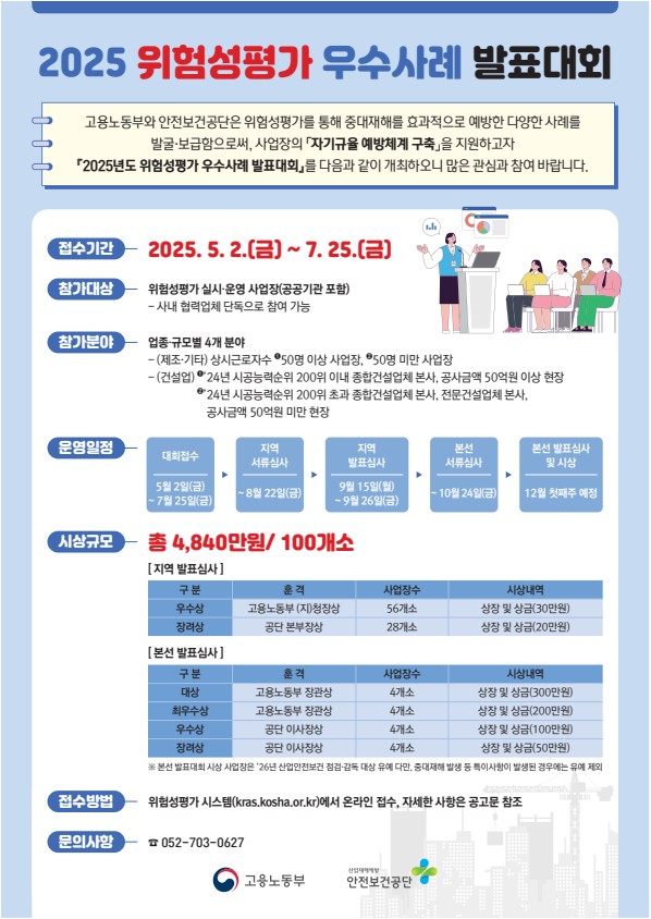[고용노동부] 2025년 위험성평가 우수사례 발표대회 공고