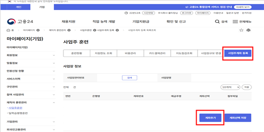 2. 사업주훈련 사업주계좌 등록 계좌 등록